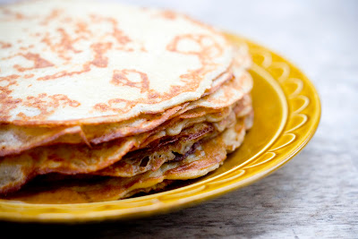 Well, this weekend, that long streak of Teflon-free cookery was broken. And it's all because of this crepe recipe. Which, of course, I had to de-glutenize - so instead of flour, I used Bob's AP and Tapioca Starch, plus a teaspoon of xanthan gum, and subbed vegetable oil for EB - but coconut oil would rule too (anyone noticed the love Coconut oil's getting these days? so awesome).
